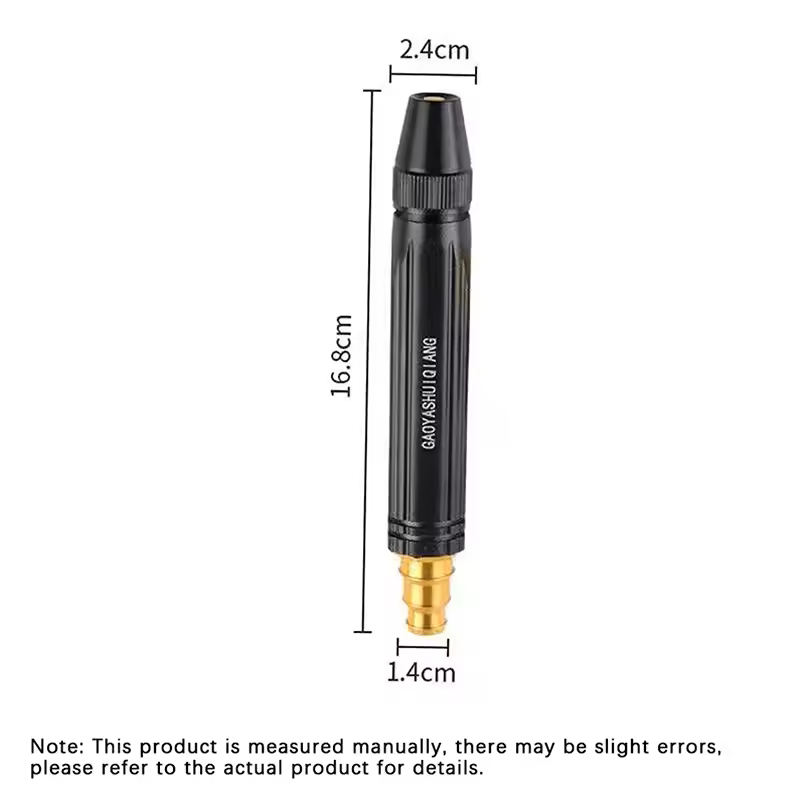 Fabricada con materiales de alta calidad, como ABS y aleación de aluminio, esta boquilla es resistente y duradera, asegurando un uso prolongado sin desgastes. Con un tamaño compacto de 165 x 25mm y un peso ligero de solo 96 gramos, es increíblemente fácil de manejar y almacenar.