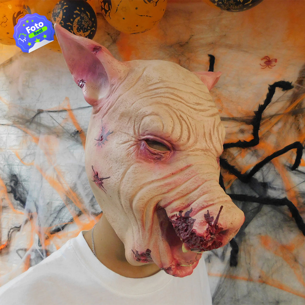- Prepárate para halloween con esta increíble máscara de disfraz de cerdo asesino demoníaco terrorífico.