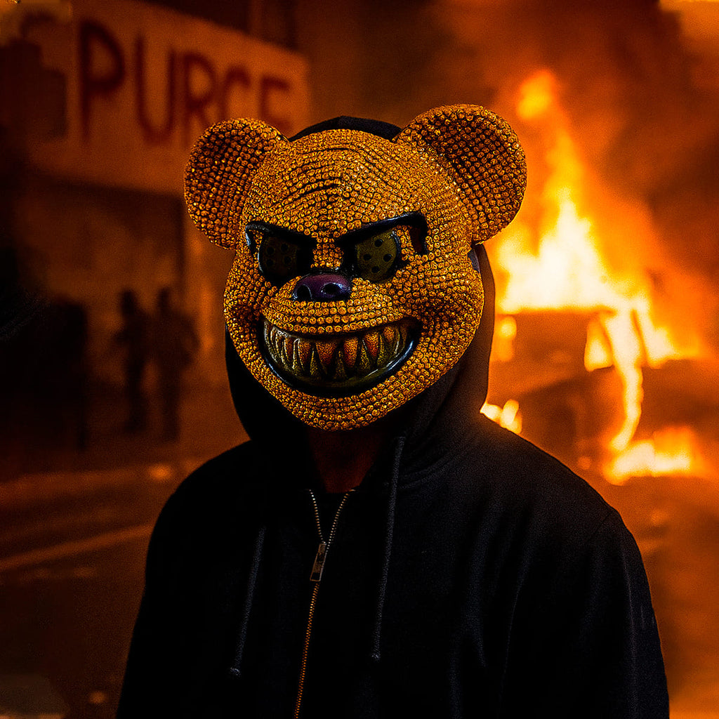 - 🟡 Máscara de oso dorado inspirada en La Purga.