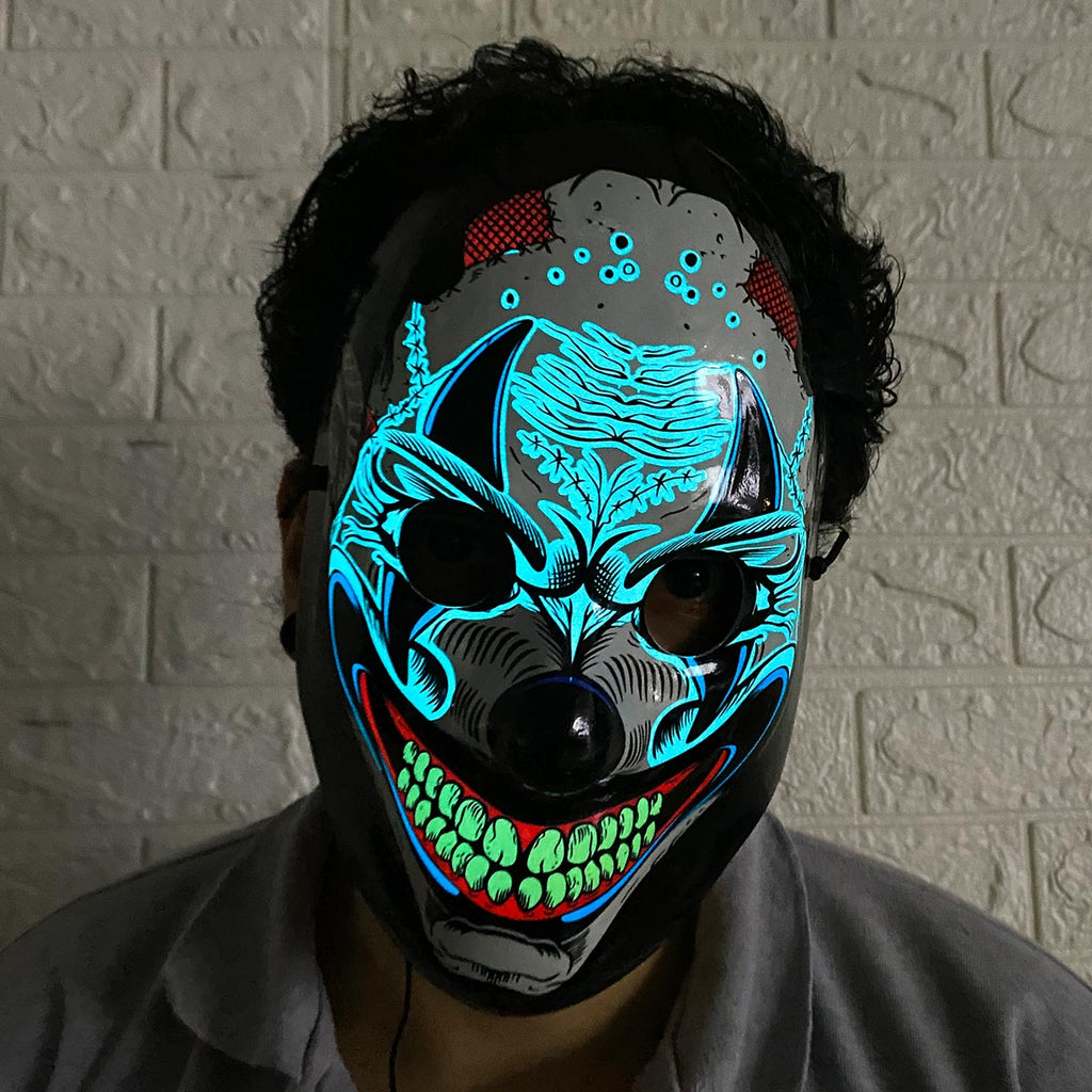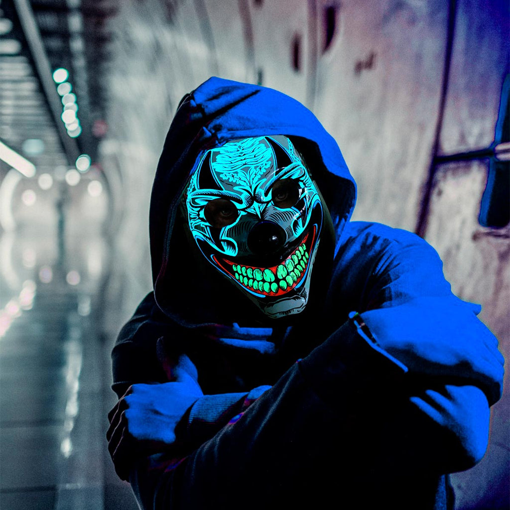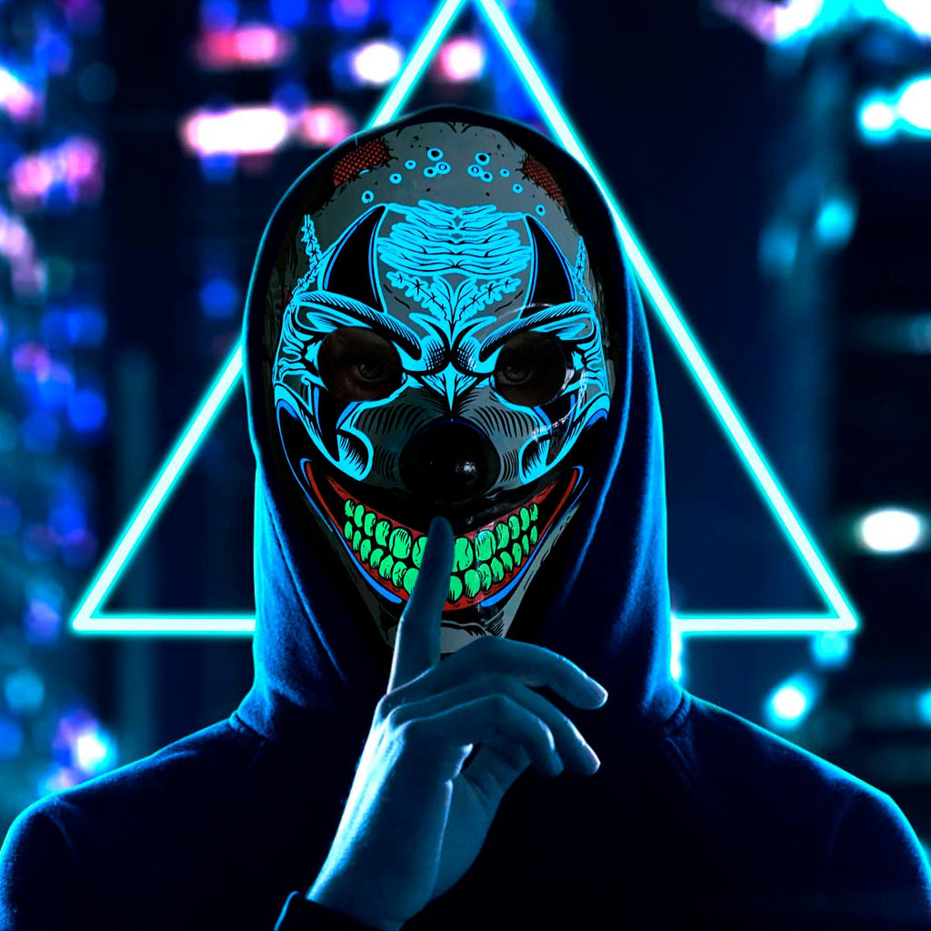 Halloween, cumpleaños, cosplay, entre otros. - La máscara está hecha con un cable de luz fría que funciona casi sin calor y no daña su piel por lo que puede usarlo de manera segura.