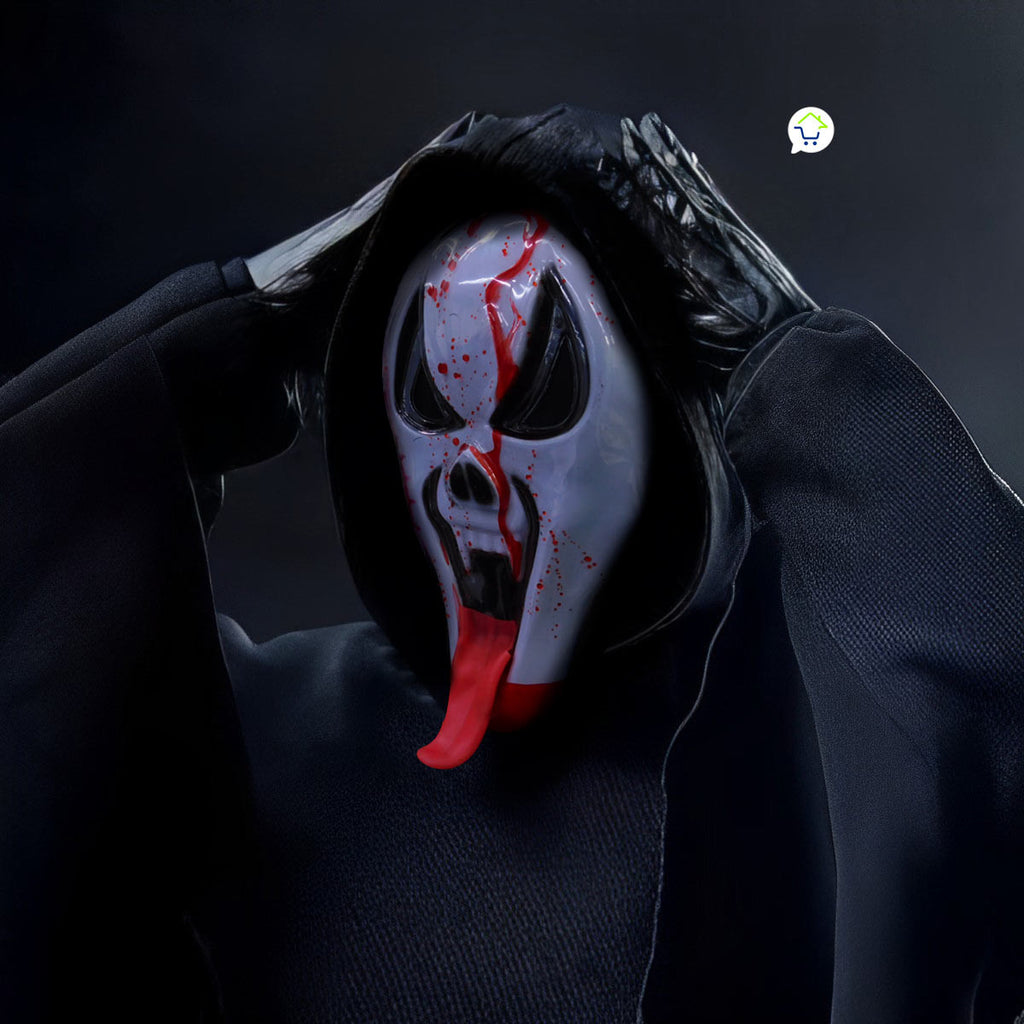 • Máscara con red sellada de tubería que permite que la sangre falsa fluya fácilmente.