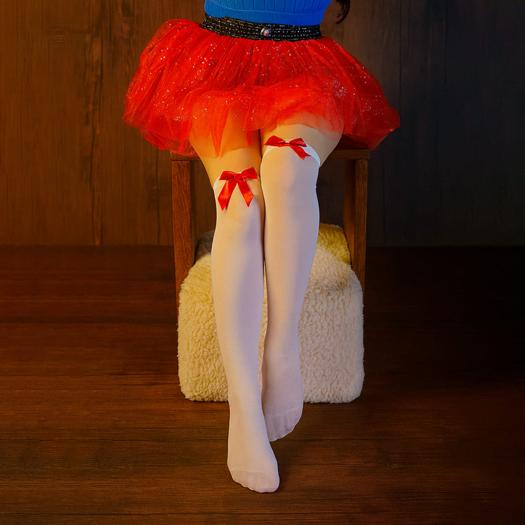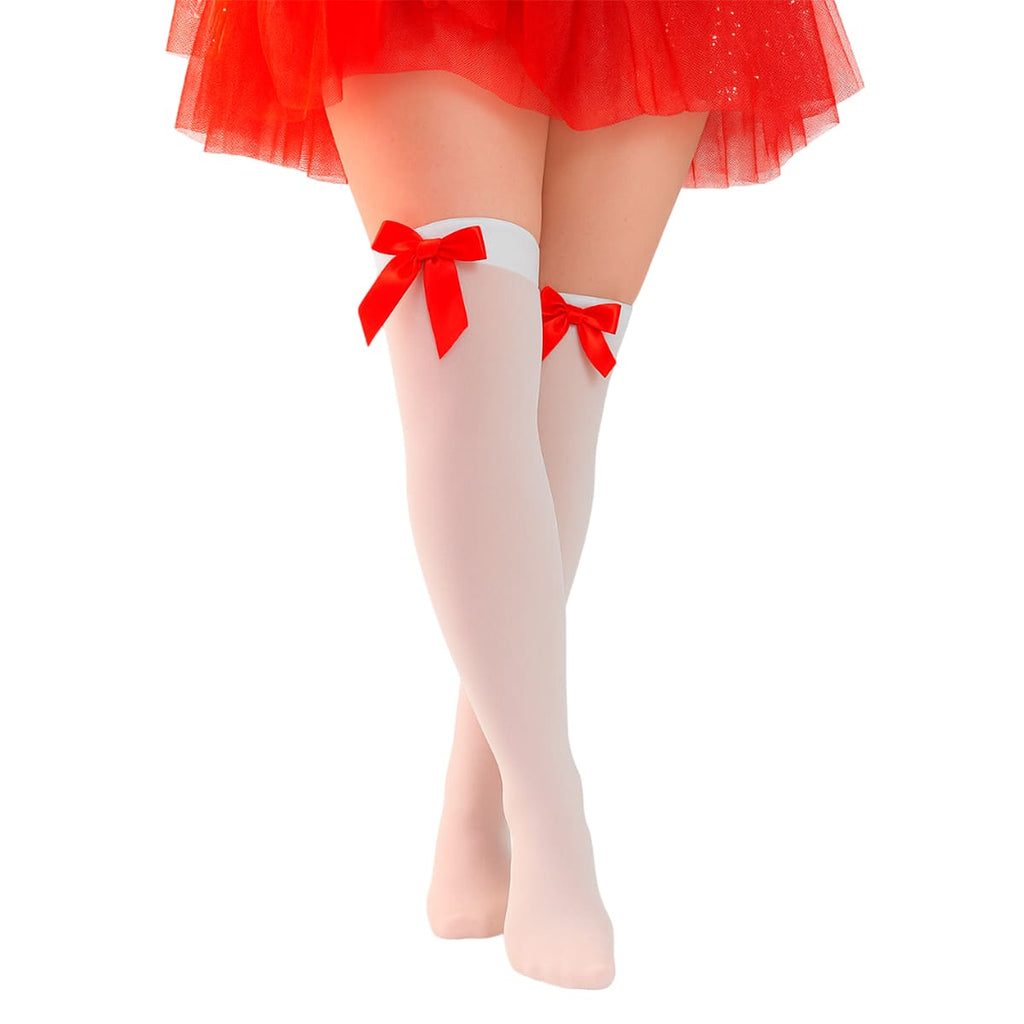 Medias largas blancas con moños rojos 🎀. Ideales para cosplay, Halloween, fiestas y disfraces coquetos 🎭. Material: 85% Nylon, 15 % Elastano.Talla Única.Peso: 34g.Tamaño empaque: 20 X 11 X 2 Cm.🎀 Diseño coqueto con moños rojos decorativos en la parte superior.🧦 Medias largas color blanco, suaves y cómodas.🎭 Perfectas para disfraces de colegiala, muñeca, cosplay o Halloween.⚪ Talla estándar elástica, se ajusta a la mayoría de mujeres.📸 Excelente accesorio para fotos, fiestas y temáticas de fantasía.Contenido del Paquete1 Par media bucaneras con moño hasta la rodilla.100 % Nuevas.